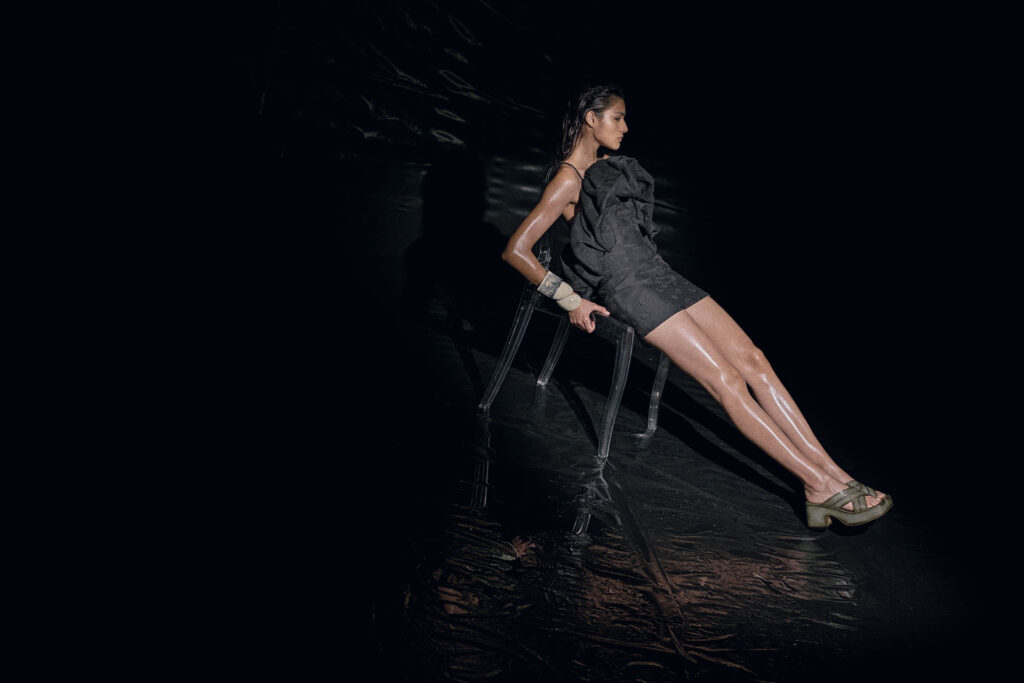 Sandals: Felmini; Jacket and dress: Davii; Underwear: Stylist’s own