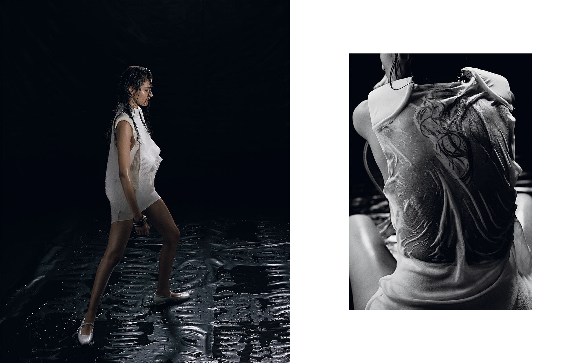 (Left) Balerinas: Apple of Eden; Top and dress: Davii | (Right) Dress: Davii; Underwear: Stylist’s own