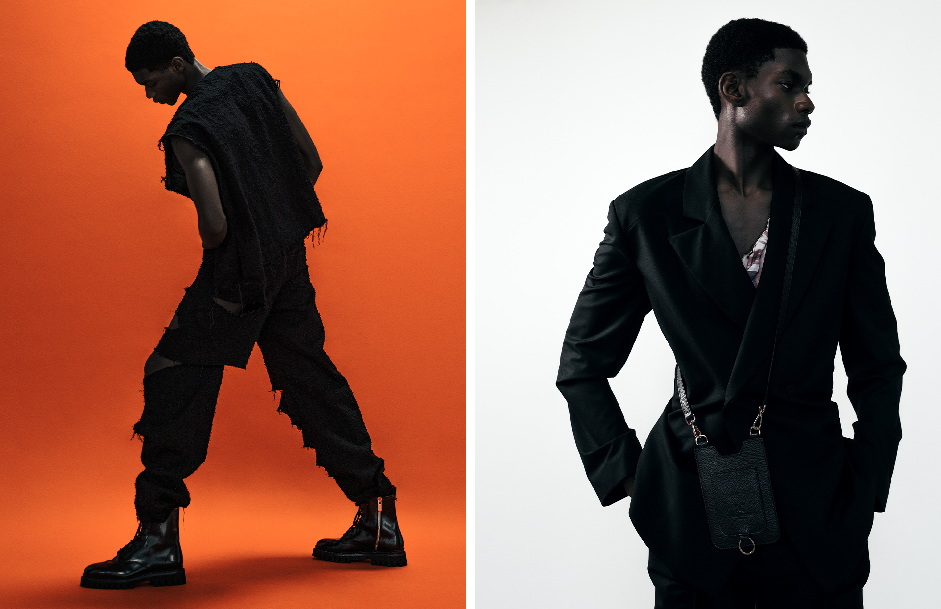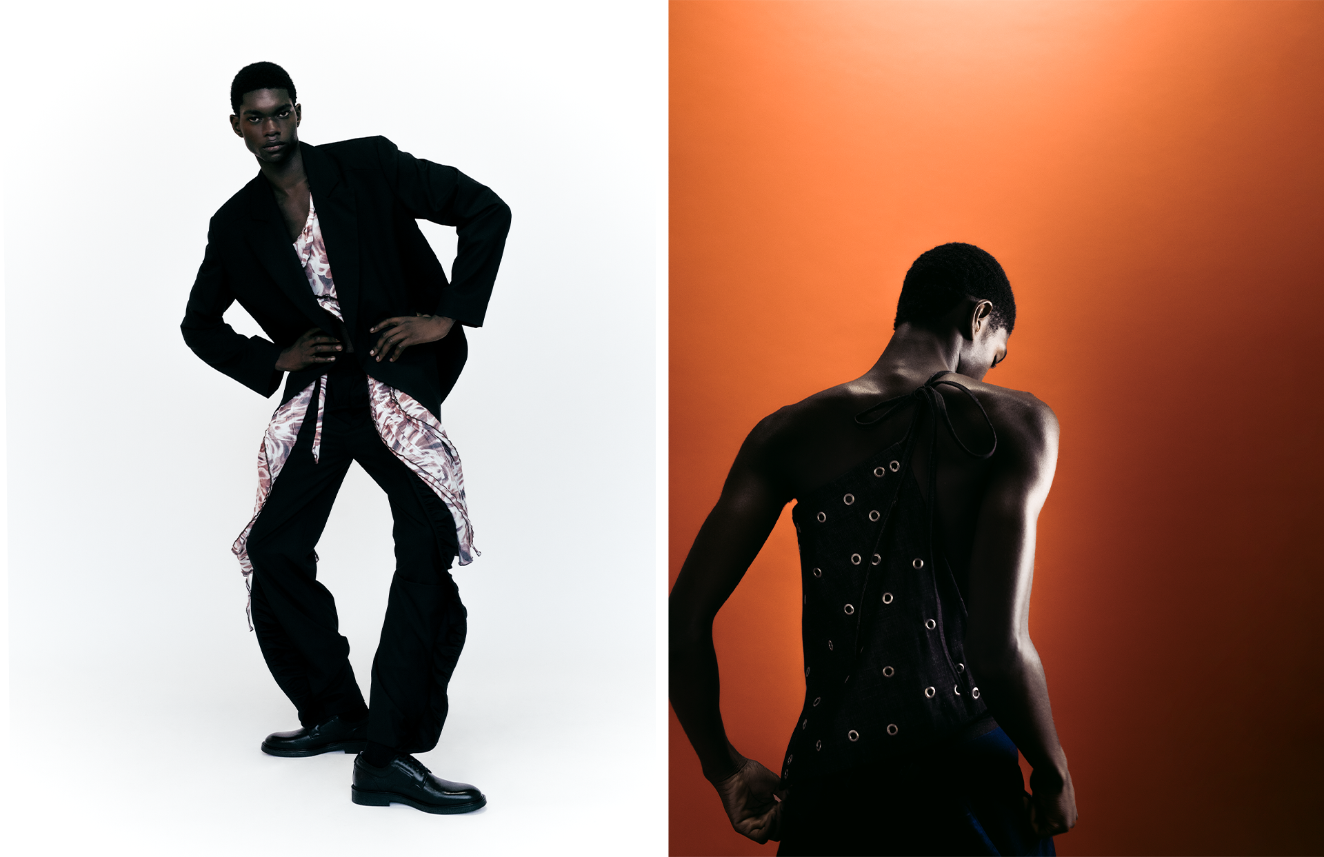 (Left) Shoes: Ambitious; Blazer and trousers: Luís Carvalho; Top: Inês Arthayett | (Right) Top: HIBU; Trousers: Bárbara Atanásio