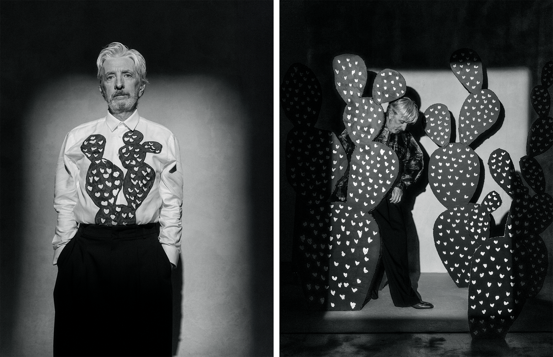 (Left) Total look: Stylist own | (Right) Shoes: Centenário; Jacket: Bárbara Atanásio; Trousers: Stylist own